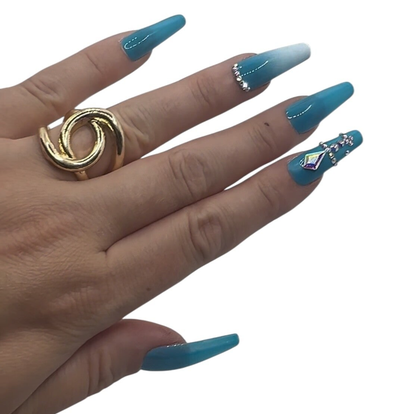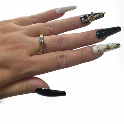 Une création raffinée mêlant le blanc pur et un effet marbre doré délicat. L’ongle central est sublimé d’un bijou cristallin pour une touche luxueuse. Parfait pour un style chic, minimaliste et sophistiqué.